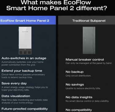 EcoFlow systems provide advanced home backup power using battery storage and smart electrical panels.